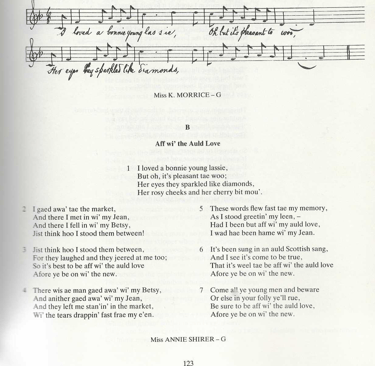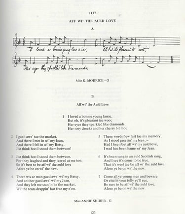 1136 Begone Bonnie Laddie – 8 verses [From Mr I Sangster, carpenter, Kininmonth. Picked up when a little girl more than 20 years ago. Not complete. Has fine rollicking tune.]