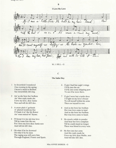 1079 The Sailor Boy – ‘I heard a maid in Bedlam sae mournfully did sing, 10 verses {From my father. It was one of his favourite songs]